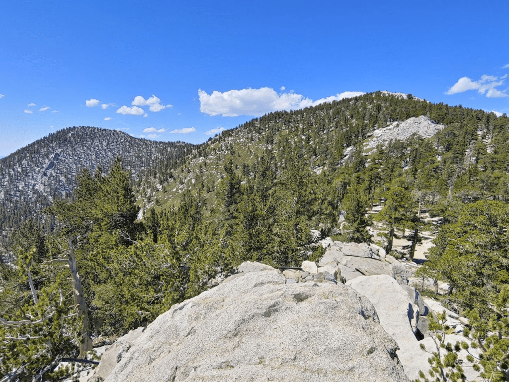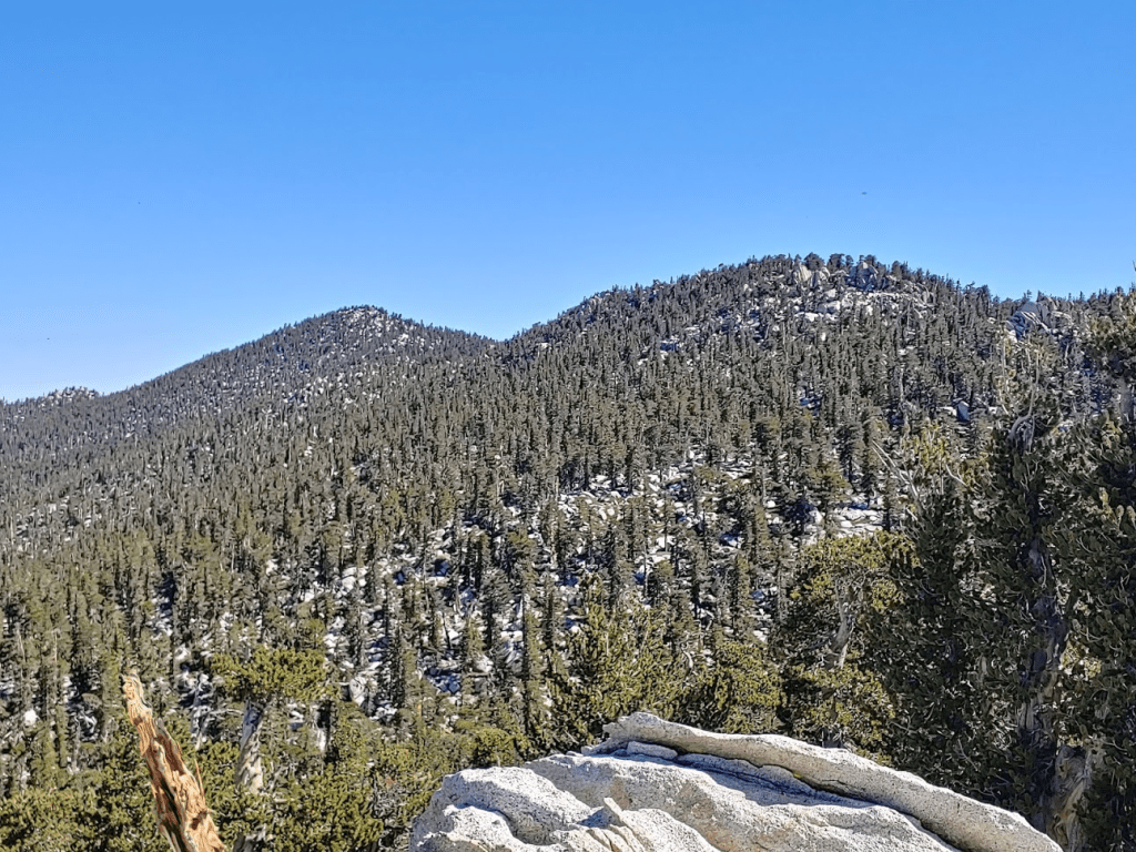 The summit area of Jean was relatively flat and covered in trees, so the views weren’t great. San Jacinto was now very close.