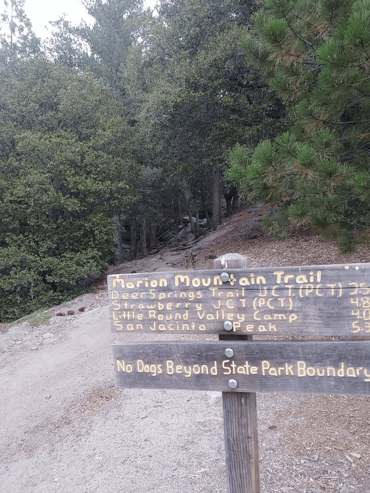 With temperatures forecasted to reach the 90s by the coast and the 110s inland, I decided to head to the upper reaches of the San Jacinto Mountains for a nice loop hike on the Saturday of Labor Day Weekend. I had climbed San Jacinto itself in June 2018, but there are a number of nearby subpeaks of at least 10,000 feet of elevation. I had read various reports of people stringing these together in one long day hike. There seem to be a few variations, but the one I was most interested in consists of the 7 named summits over 10,000 feet. In order of how I climbed them, they are: Marion Mountain (10,362 ft), Shirley Peak (10,388 ft), Jean Peak (10,670 ft), Miller Peak (10,400 ft), San Jacinto Peak (10,839 ft), Folly Peak (10,480 ft), and Newton Drury Peak (10,160 ft). All except Miller and Shirley are Sierra Club HPS peaks. There are multiple ways to approach the San Jacinto high country, with the most popular (and easiest) being from the Palm Springs Aerial Tramway, which takes you from near sea level in Palm Springs up the eastern side of the mountain to 8516 feet. However, the tram was still closed due to Covid-19. I would like to ride the tram someday, but I prefer the western approaches due to the shorter drive (I don’t mind the additional hiking miles either). Anyway, I wanted to get a very early start due to the excessive heat, so I woke up at 3:30am and hit the road at 4. I drove about 2 hours to the small mountain town of Idyllwild, where I picked up my wilderness permit. Permits are required for entering the wilderness area, but they are free and can be obtained at a kiosk outside the ranger station in Idyllwild. I then drove another 10 minutes to Marion Mountain Campground, which is where the Marion Mountain Trail begins. I started hiking at 6:23am from 6400 feet.