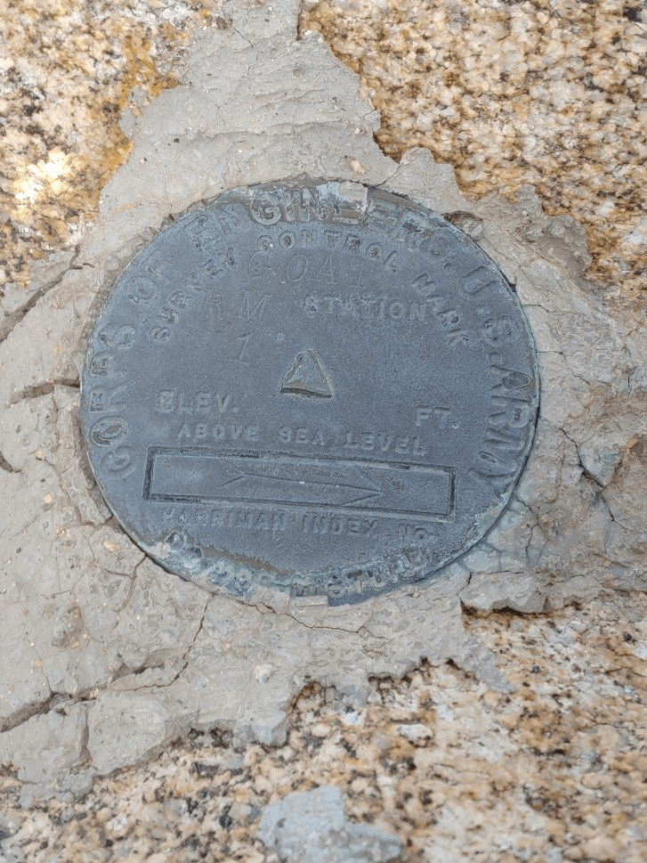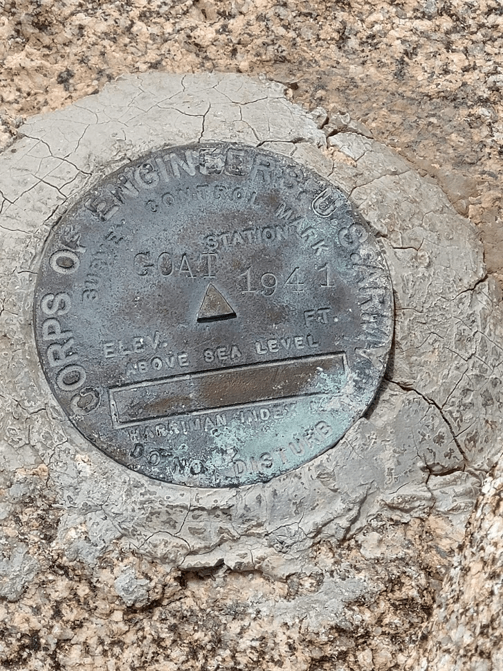 I made it to Goat at 1:51pm after 3.5 miles. I located the benchmark and 2 reference markers.
