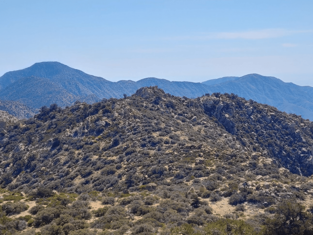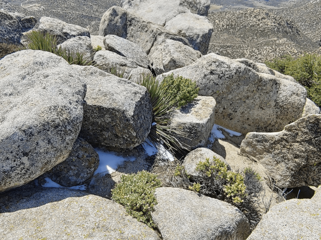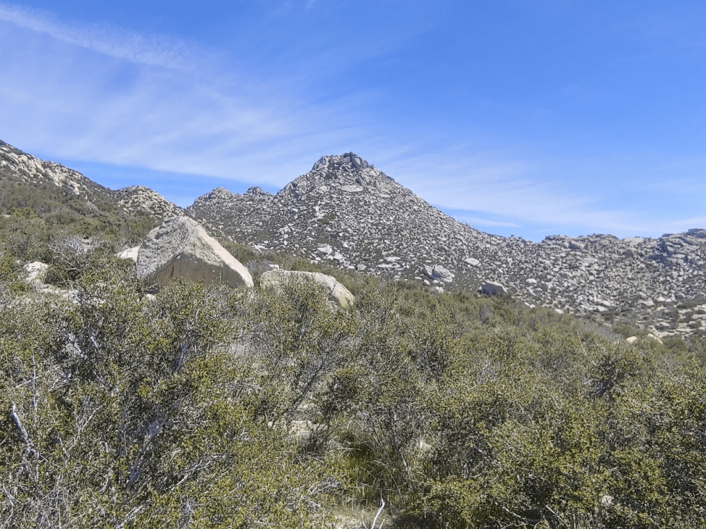 Eventually I turned south and approached Goat Benchmark. I’m not sure how this made the cut on the San Diego 100 Peaks list. It is quite literally just a pile of rocks with no prominence. It would be impossible to locate without GPS since it is surrounded by dozens of other similar piles of rocks.