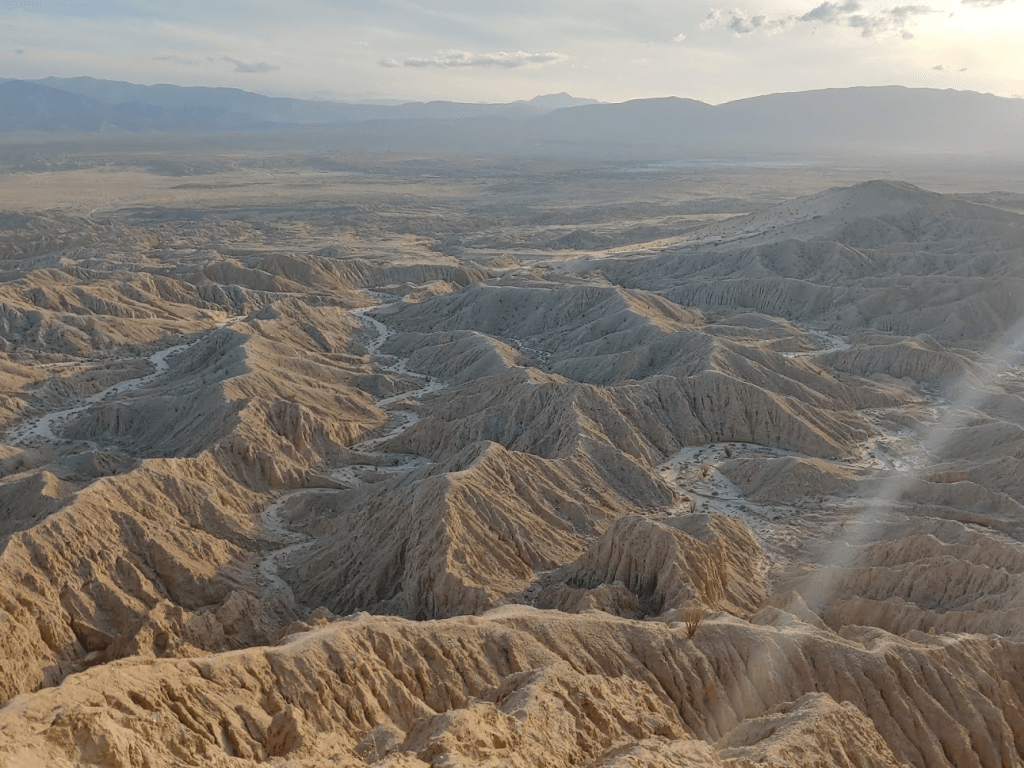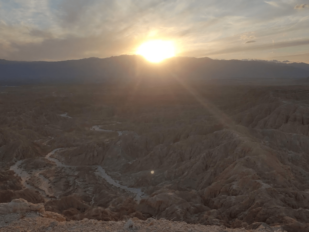 I got back in the car and drove the remaining ~3.5 miles to Fonts Point. There were 5-6 other cars parked there when I arrived. I noticed a few people unpacking chairs to sit and watch the sunset. I also noticed a few people scattered around with fancy cameras taking pictures of the scenery. I got out of the car and made the short walk to the viewpoint. Fonts Point (1294 feet) is one of the few big tourist areas in Anza Borrego I hadn’t been to yet. After seeing the views, I could certainly understand why it is so popular. The view over the Borrego Badlands was spectacular.