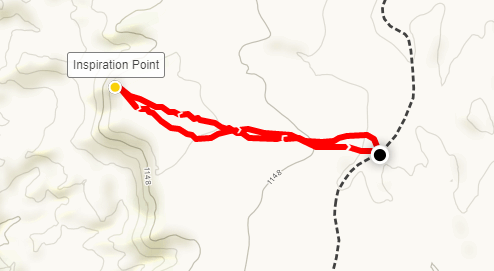 I soaked in the views for just a few minutes before going back to the car. I still had one more minor peak to climb before sunset. I drove back down the sandy road for less than a mile before getting out to start my climb towards Inspiration Point (1211 feet). This was a very easy walk up a gentle hill.