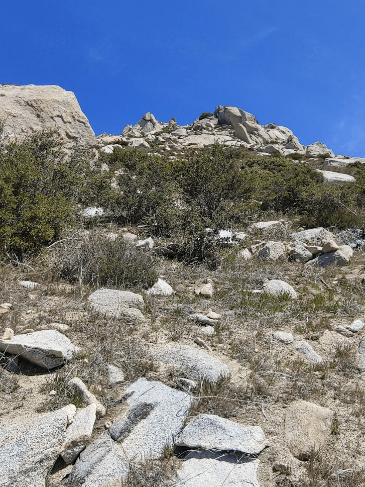 I could see the rocky ridgeline leading up to the peak of San Ysidro.