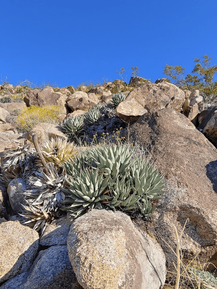Agave started to appear at this elevation, which made progress even more difficult.