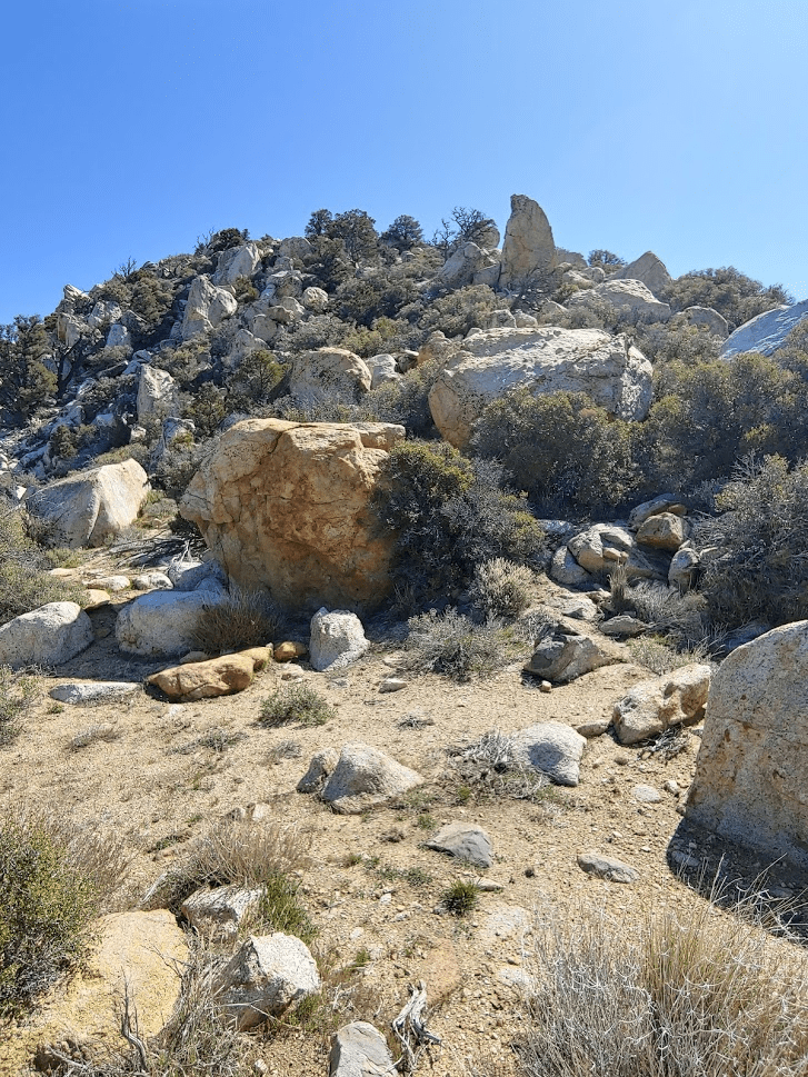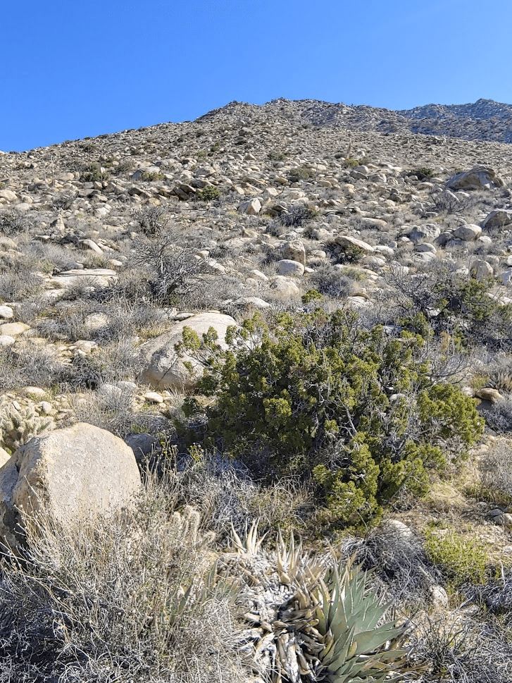 It was a 1.5 mile walk over gentle terrain to the base of the final climb. Juniper shrubs were plentiful at this elevation.