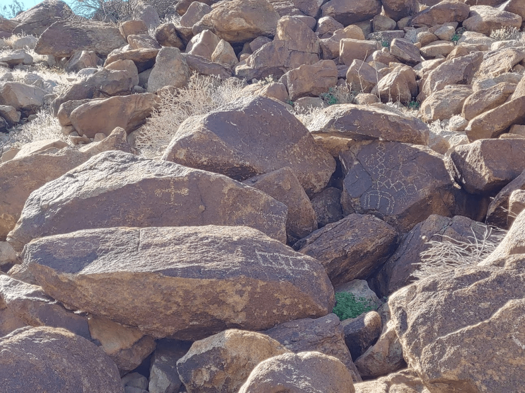 I was able to locate the petroglyphs I missed in the morning. They were on some large boulders on the western side of the beginning of a large canyon near where the Corp Benchmark was supposed to be. Very cool!