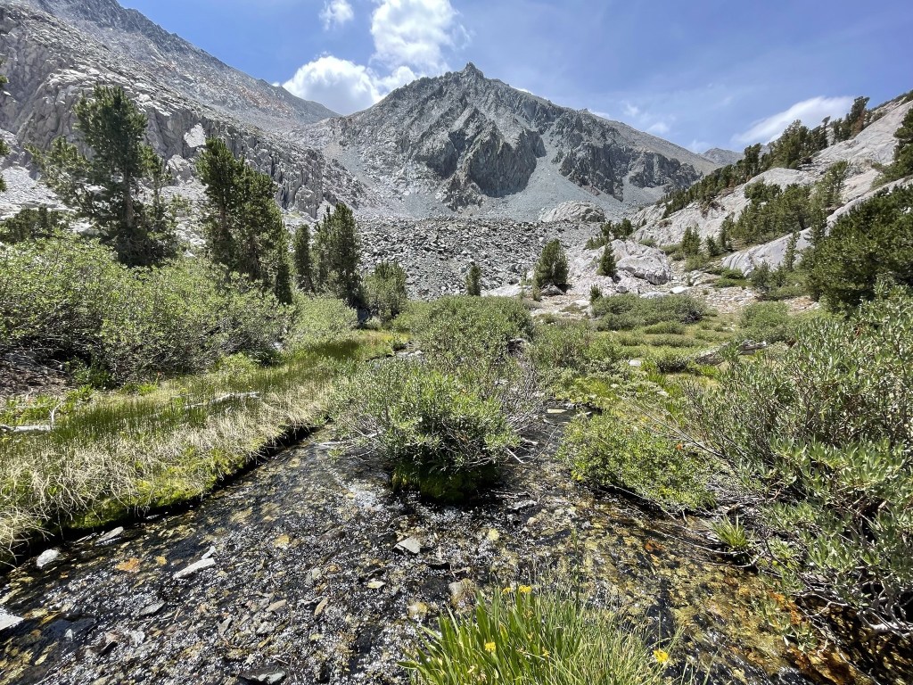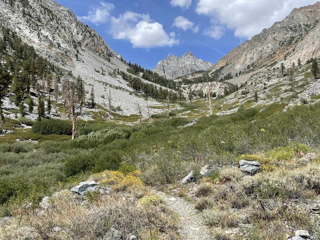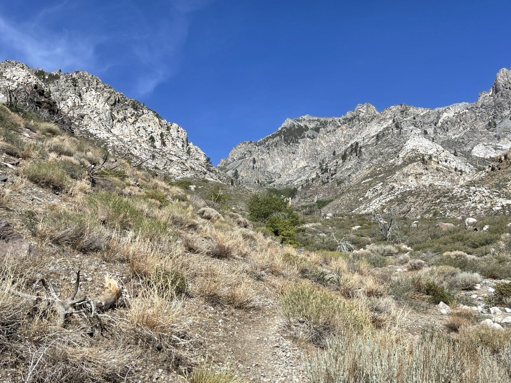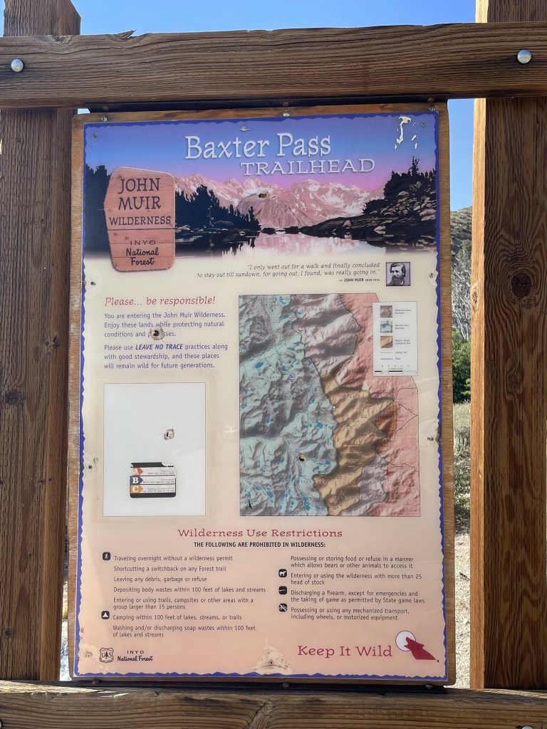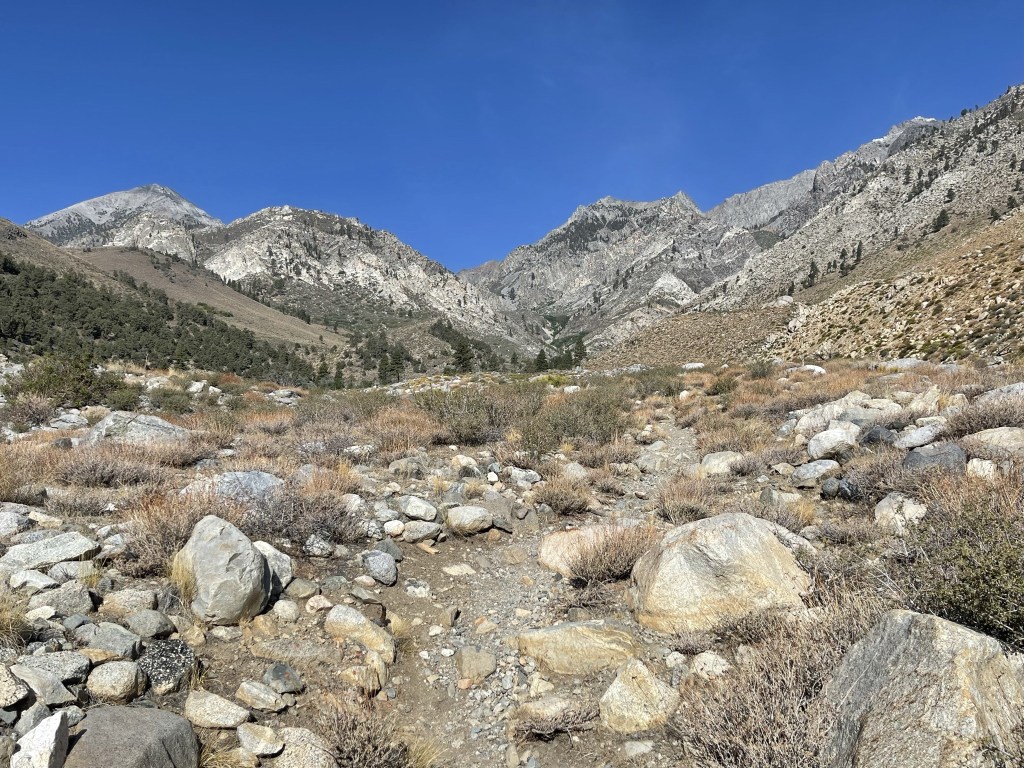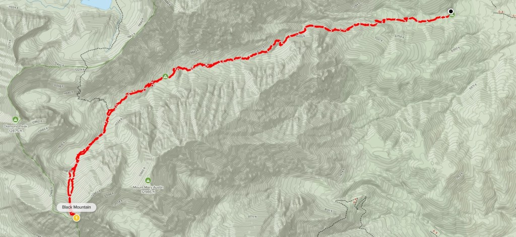Black Mountain might be the most generic name for a mountain that someone could come up with. According to Wikipedia, there are over 100 peaks in California named Black Mountain (there are 2 in San Diego County alone). The Black Mountain I was after today is the highest of them all according to the Peakbagger database. At 13291 feet, Black Mountain lies on the Sierra Crest and towers nearly 10000 feet above the Owens Valley to the east. It is most commonly approached from the Baxter Pass Trailhead near the town of Independence. I left San Diego at 3:30am and made the 5 hour drive north. The trailhead lies at the end of N Oak Creek Road which is about 5.5 miles from Highway 395. The final 3 miles are well graded dirt and passable for any car. There were 7-8 other cars there when I arrived. I began hiking at 8:33am from 6061 feet above sea level.