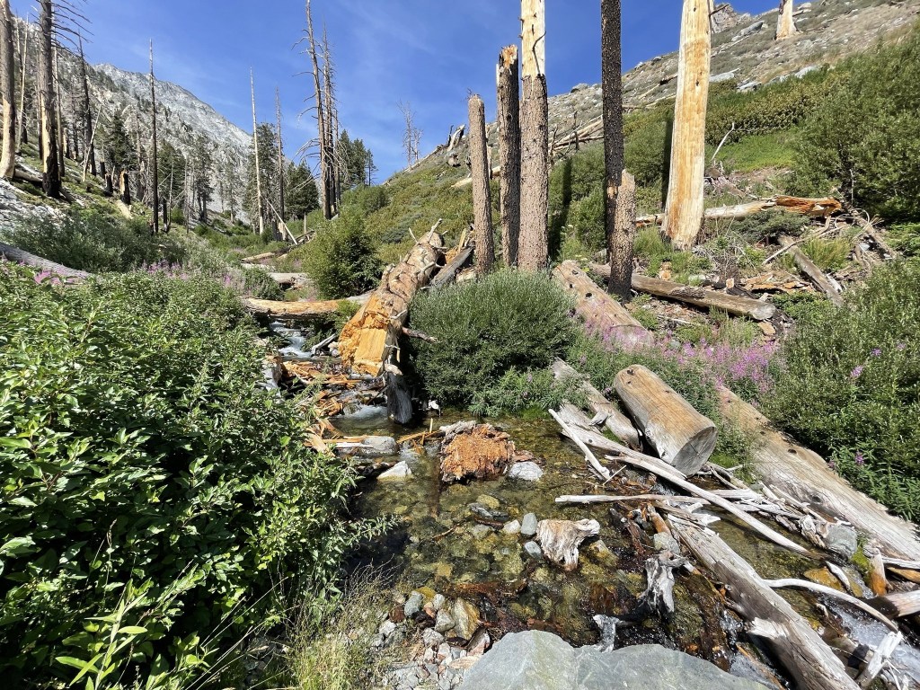 At 5.8 miles I left the trail to begin the final climb to Black Mountain. The trail turned north at this point towards Baxter Pass, but I took off southwest towards the peak. I crossed the creek one more time at Summit Meadow.