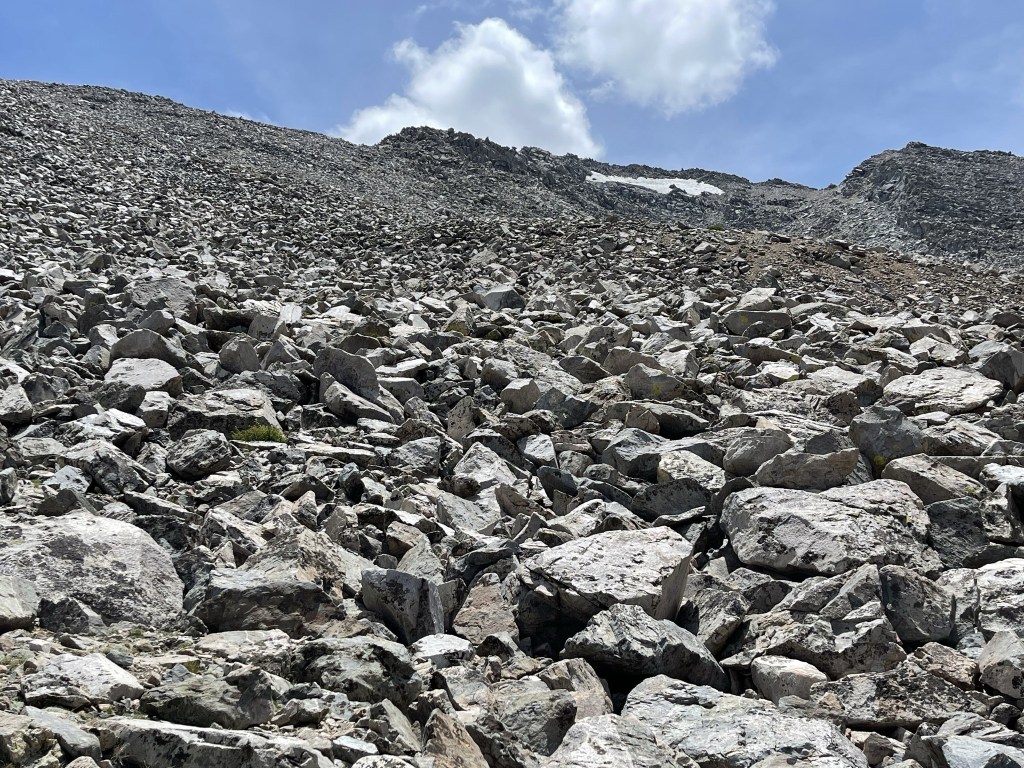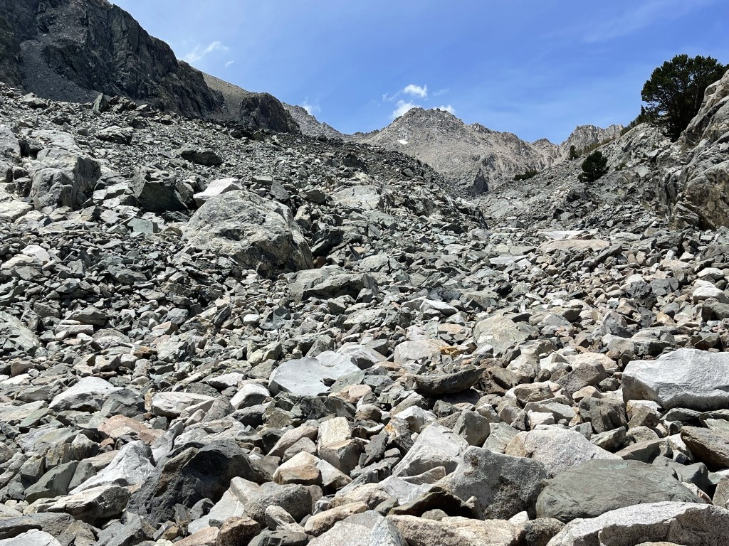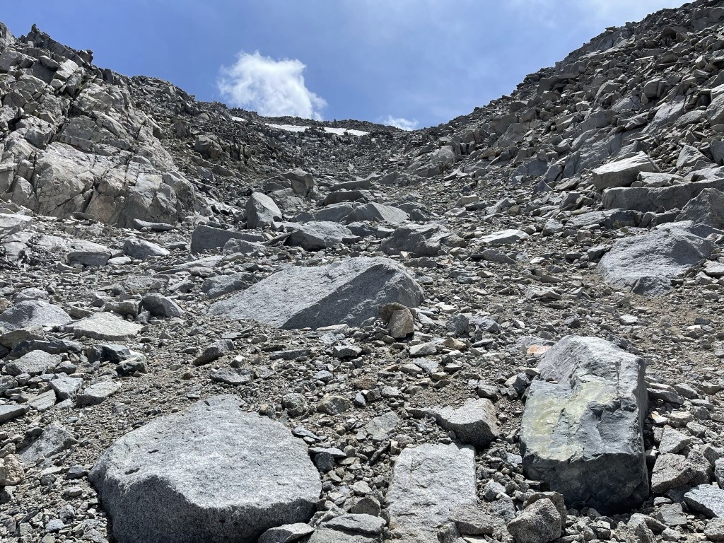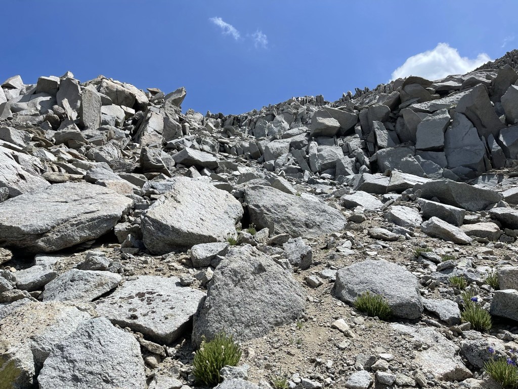 I was at 10700 feet at this point, so I had gained nearly 5000 feet but still had over 2000 feet to go. I proceeded up a large boulder field.