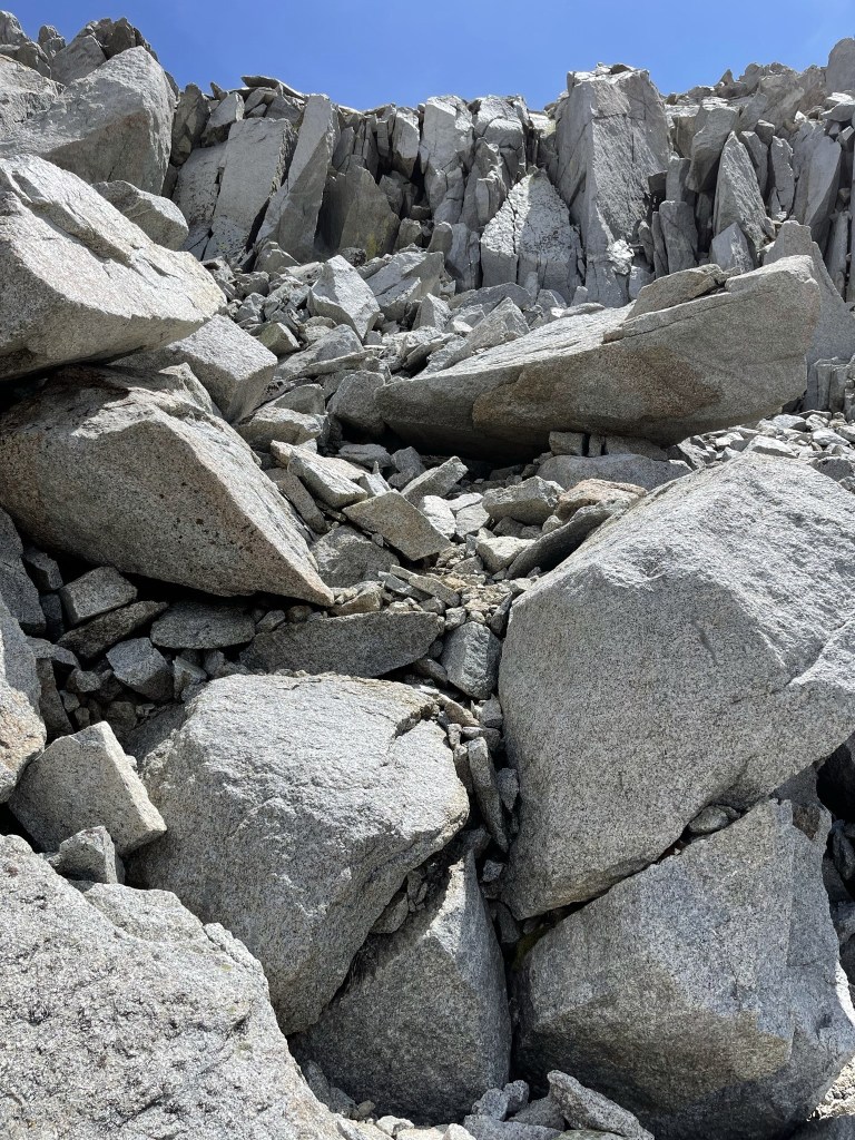 The lower part of the face was pretty tedious. The medium sized rocks weren’t big enough to be completely stable, so the ground was shifting constantly beneath my steps.