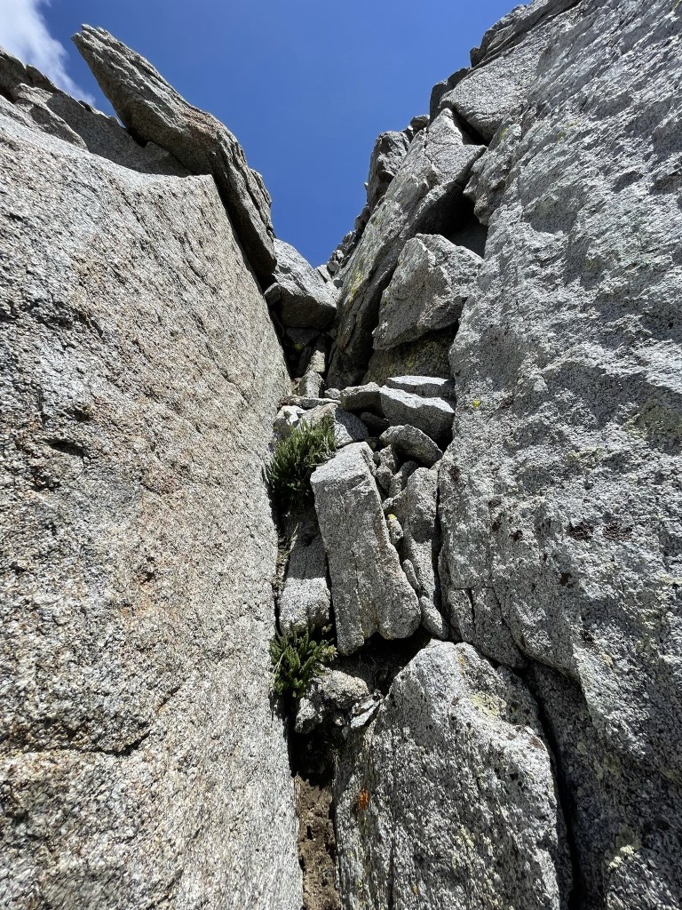 I shimmied my way up chimney just below the top. This required an easy class 3 move.