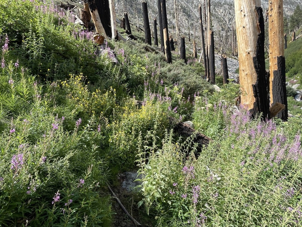 I made good time now that I was back on the trail. I started to feel much better once I was below 10000 feet, which confirmed my suspicions that I had a mild case of altitude sickness (not surprising considering I went from sea level to above 13000 feet in under 12 hours). I noticed some pretty flowers along the trail.