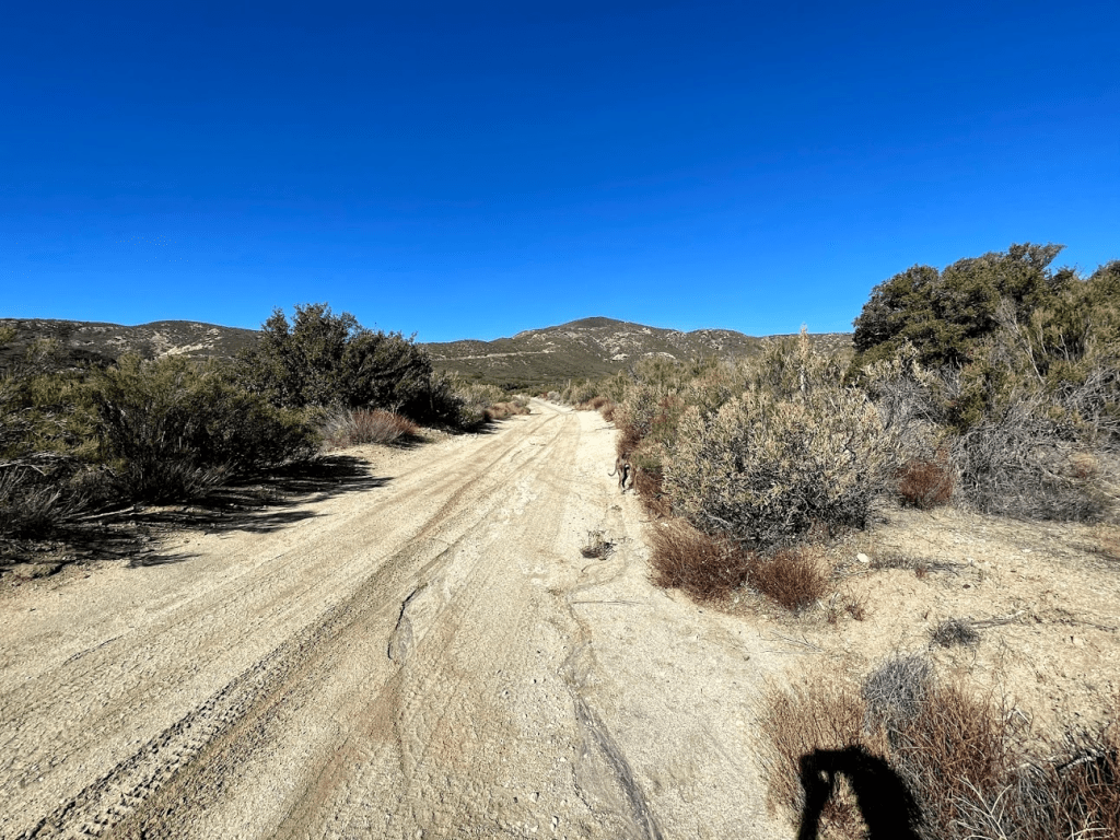 We got in the car and made the short drive to the next trailhead, which is located on the south side of the Pine Valley Road exit off of I-8. This trailhead is a staging area for OHVs, and it was very busy when we arrived. We began this hike at 1:29pm from 3876 feet. We hiked for a very short distance on Pine Valley Road and then made an immediate right turn onto another road. Thankfully, this road was gated so we wouldn’t have to deal with OHVs on this route.