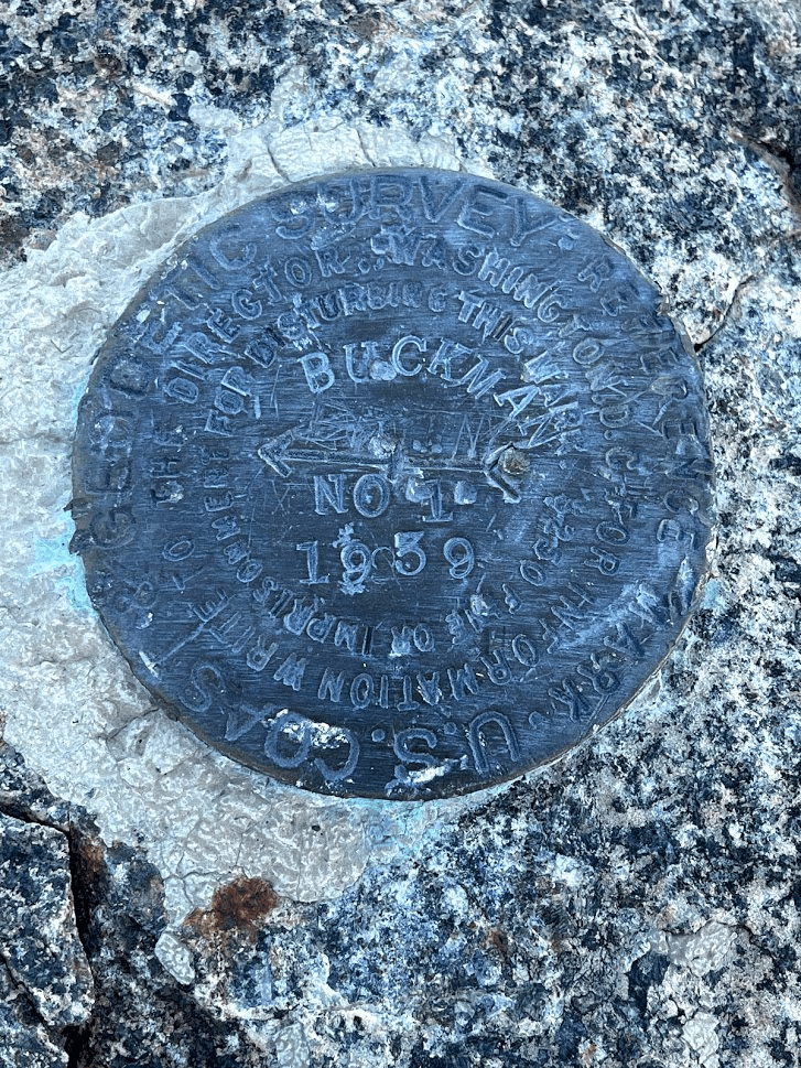 We found 2 register cans on the summit. I signed the newer looking one which dated back to 2016. We also found the benchmark and 2 reference markers.