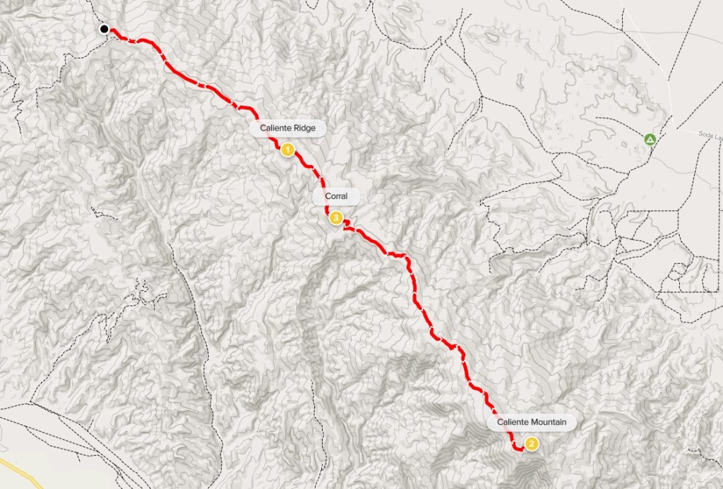 I woke up early on Wednesday morning and headed north for Carrizo Plain National Monument. My plan for the first day of my trip was to climb 5106 foot Caliente Mountain, which is the high point of the monument as well as San Luis Obispo County. The Carrizo Plain is a large grassland and Caliente Mountain forms a long northwest/southeast trending ridge down the middle of it. From Highway 166, I drove 29 miles on Soda Lake Road, then south for 4 miles on Selby Road, and then 3 miles on Caliente Mountain Road to the trailhead. Most of the roads were well graded and passable for any car. Caliente Mountain Road has some steep sections and was a little rougher but still in good shape. I noticed some excellent dispersed camping sites on Caliente Mountain Road, and many of them were occupied even in the middle of the week. I began this hike at 7:17am from 3891 feet above sea level.