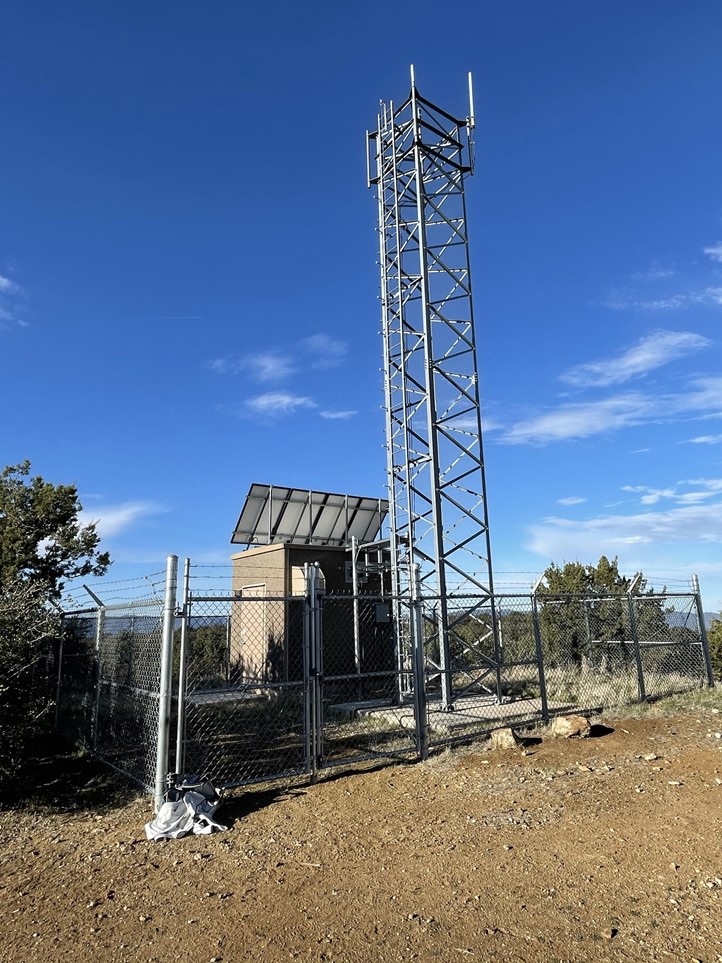 The road wound its way along the ridgeline, gaining and losing elevation very gradually. At 2.9 miles I reached a small prominence referred to as Caliente Ridge on Peakbagger. The elevation here is 4425 feet so I had only gained about 500 feet so far. There is a small installation on this peak.