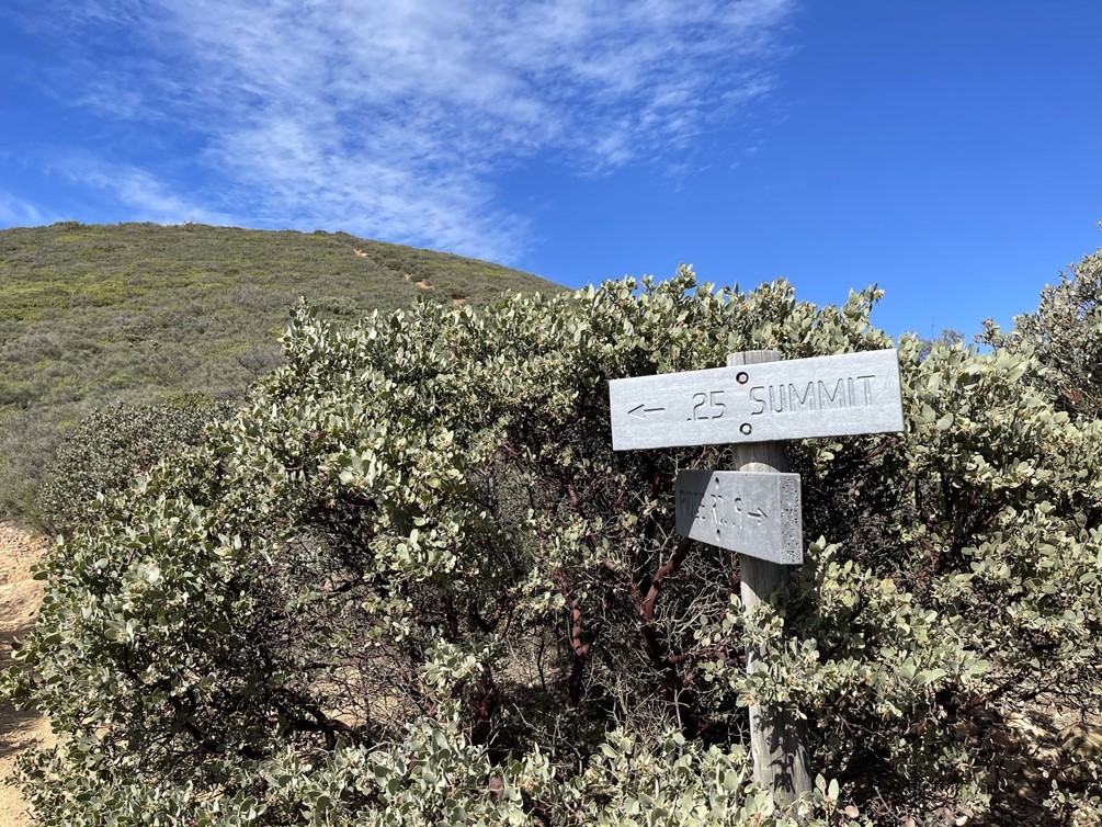 I packed up the car and continued on my way. It was still pretty early in the day, so I decided I had time for one more short hike before continuing north. I settled on doing Cerro Alto, which is a 2624 foot peak near San Luis Obispo. Cerro Alto is actually the northern-most peak on the Sierra Club Lower Peaks list. I drove back to Soda Lake Road and went north until I reached Highway 58. I took 58, La Panza Road, and Highway 41 west until I reached Cerro Alto Campground, which is a nice campground in Los Padres National Forest. I paid $10 to park in the small day use lot near the trailhead. There are signs that explicitly state that the America the Beautiful Pass doesn’t work here. I found this very annoying, since the pass is supposed to work for all national parks, national forests, national recreation areas, etc. One could also park for free near the highway and walk about a mile to the campground, but I didn’t feel like adding more miles to my day. I began this hike at 3:23pm from 926 feet.