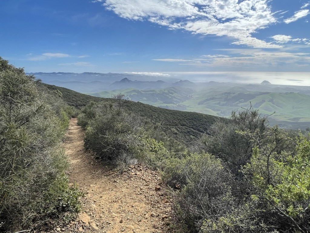 There was one other hiker on the summit when I arrived. I did not locate a register. I was pretty close to the ocean, so the western view was stunning. Morro Rock is the small hill sticking out of the water in the middle.