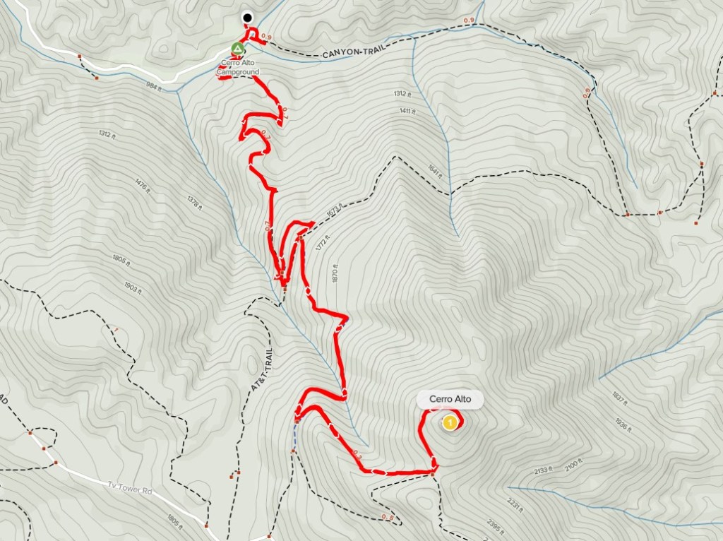 I quickly realized the trail I was on, despite being called the Cerro Alto Trail, was not the most direct route. I backtracked a short way and then found the actual trailhead near a 10 mph sign.