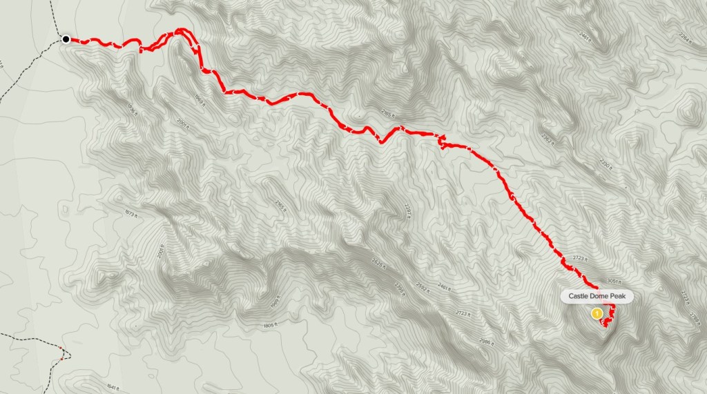 Castle Dome’s north face looked very intimidating as I approached, but I knew there was a class 3 route up the back side.