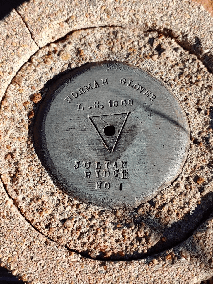 Here we left the trail to climb towards Julian Ridge Benchmark. It was a very short and easy cross country climb (about 100 feet from the road). We reached the benchmark at 9:04am at 6.36 miles!