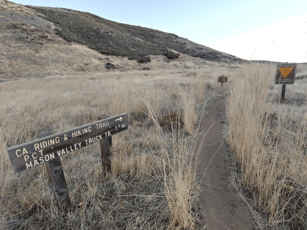 We soon reached the T intersection from before but continued straight. The Mason Valley Truck Trail, which we had hiked in on, goes to the left. At 4.15 miles we reached the PCT once more. The northbound PCT heads to the right, while the southbound PCT continues along the road we were on. At 4.47 miles we reached yet another intersection. We went left to stay on the southbound PCT. The California Riding and Hiking Trail goes right. If you couldn’t tell already, there are tons of criss-crossing roads and trails in the area, so navigation would be very difficult without a map or GPS.