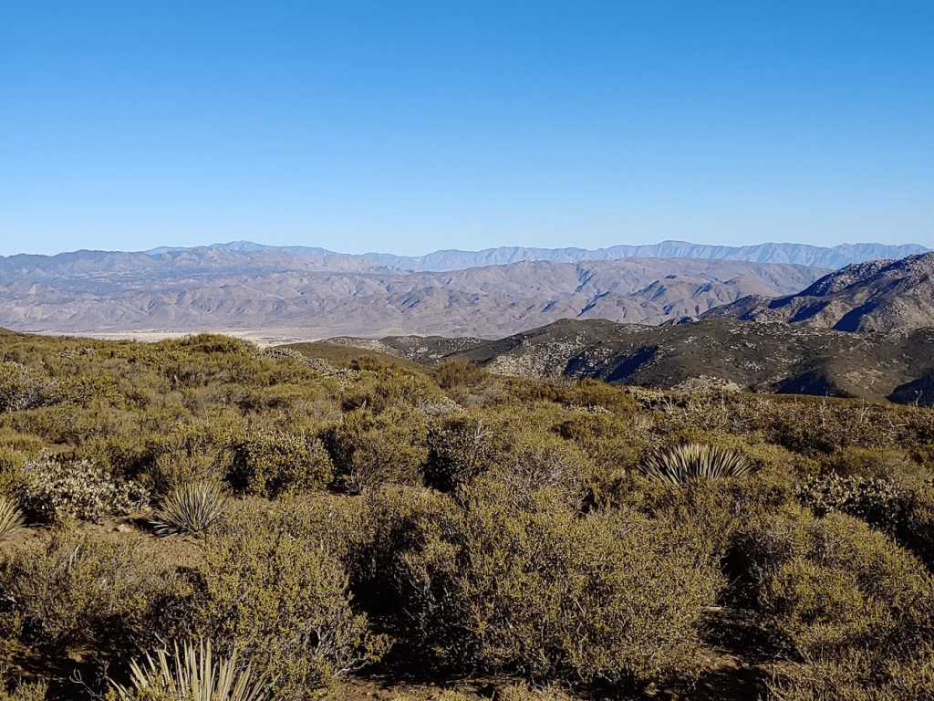 The air was very clear this morning, so the views were tremendous. Directly east was Whale Peak, a 2k prominence peak (1 of only 5 in SD County) in Anza-Borrego.