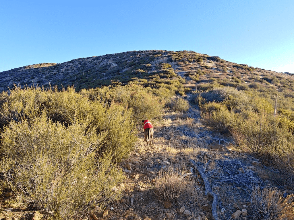 Stella led the way as we neared the summit. Like before, the firebreak made the cross country hiking pretty easy.