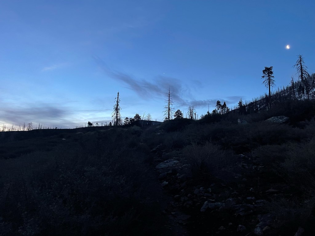 We hiked the first few miles in the dark. It was pleasant in the early morning, but we could tell it was going to be another unseasonably warm day. We passed the wilderness sign as it began to get light out.