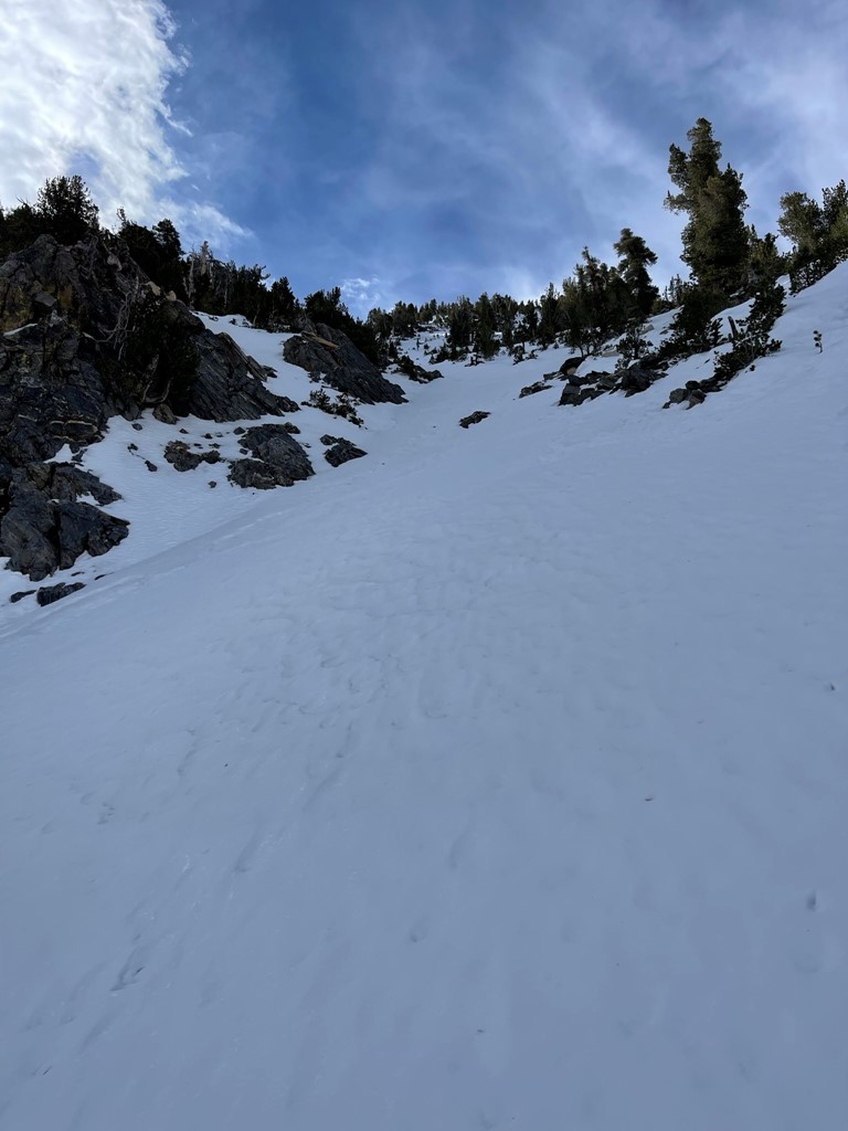 The snow in the couloir was in decent shape. I found it to be nice and firm on the left side.