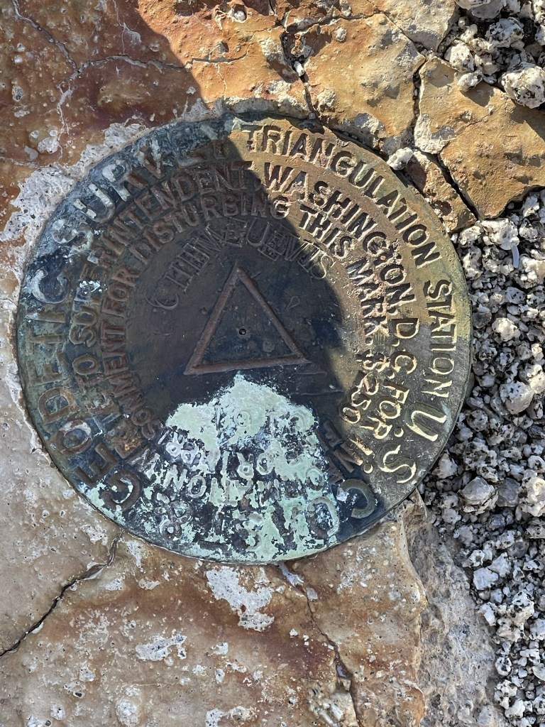 It was breezy on top, so it felt cold. I did not locate a register, but I did find the benchmark.