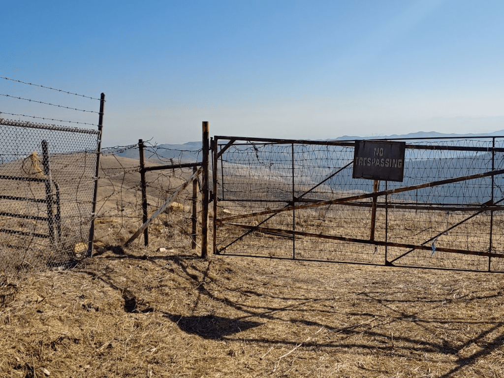 At 4.85 miles I reached a junction. San Juan Hill was to the south, but I first wanted to climb an unnamed minor peak (1686 feet) off to the east. I continued east until reaching a gate at 5.12 miles.