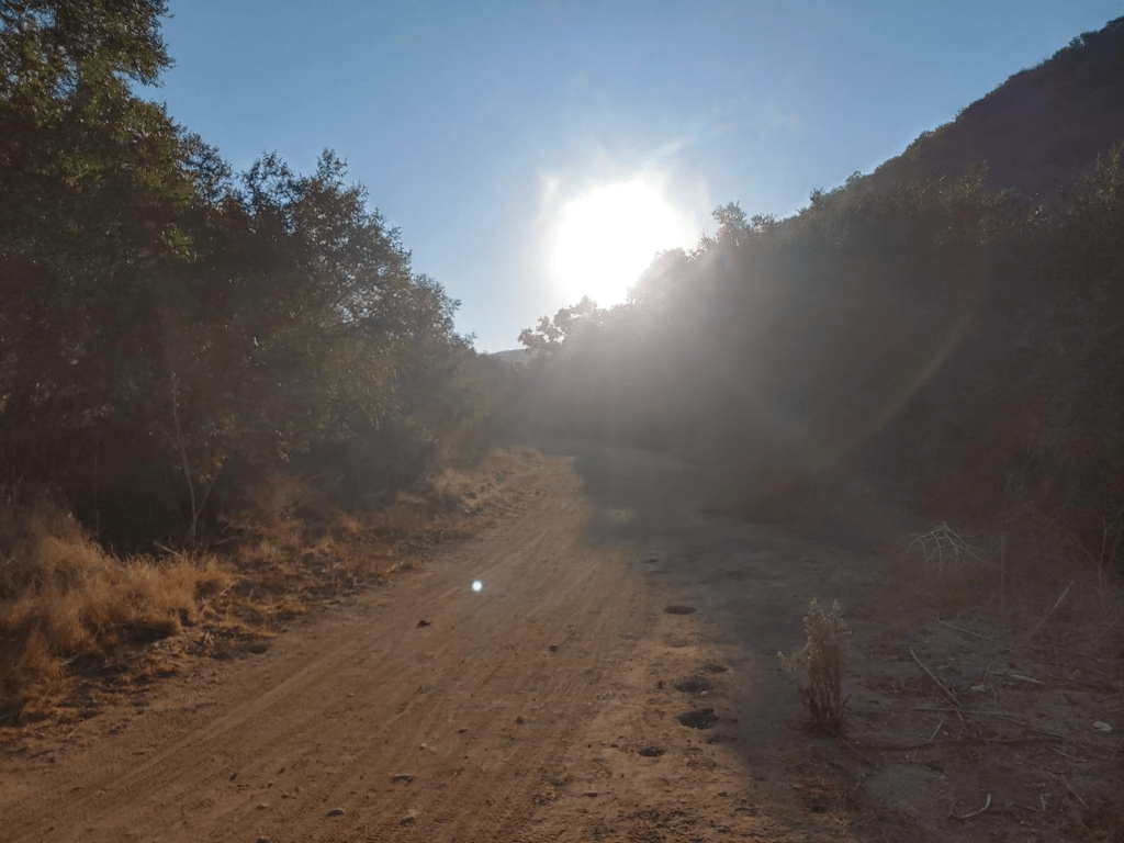 At 0.7 mile I reached the Telegraph Canyon Trail. I turned east directly into the sun.