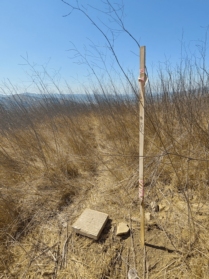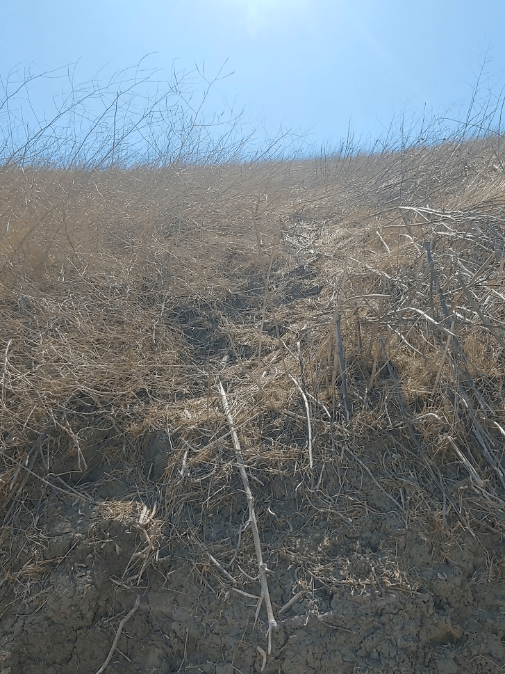 It was about a quarter mile to the peak from the trail. I was able to follow an okay use trail through the grass. The brush was pretty easy to fight through due to how dry and brittle everything was. This would certainly be a much bigger pain in the springtime. I reached the summit of Peak 1680 at 10:33am at 8.25 miles. I took a few pictures through the grass and then descended back to the trail.