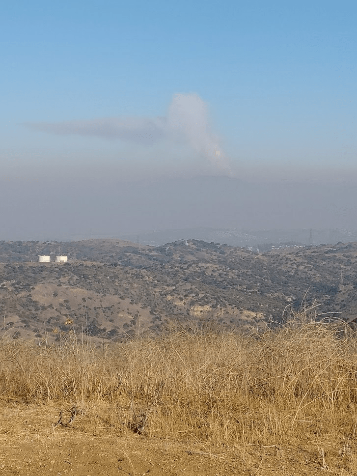 To the northwest I could clearly see wildfire smoke rising from the mountains. I think this was from the Bobcat Fire, which had been burning since Labor Day Weekend.