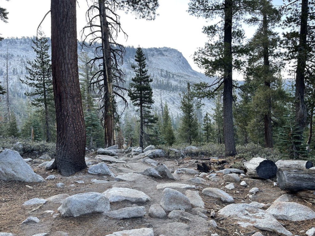At 2.6 miles I reached a junction with the Sunrise Lakes Trail. I went right to continue on the Clouds Rest Trail.