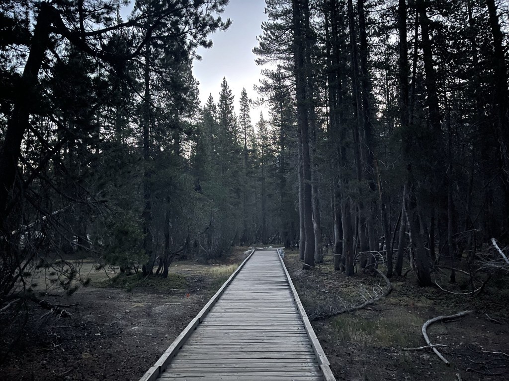 Clouds Rest is a 9926 foot mountain that rises over 5000 feet above Yosemite Valley. Along with Half Dome, it is one of the iconic locations in Yosemite National Park and an extremely popular hike. Unlike Half Dome, the standard route does not require a permit, so it is an excellent backup option if you are unsuccessful in the lottery. The easiest route to Clouds Rest begins from Tenaya Lake along Highway 120. I woke up early from my campsite just outside the park near Mono Lake and made the 45 minute drive to the trailhead. The parking lot was under construction, so I parked along the side of the road. I began hiking at 6:18am from 8148 feet.