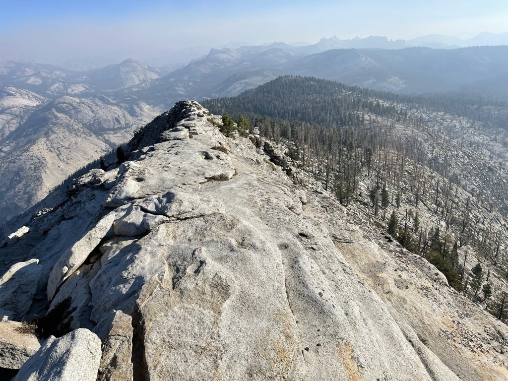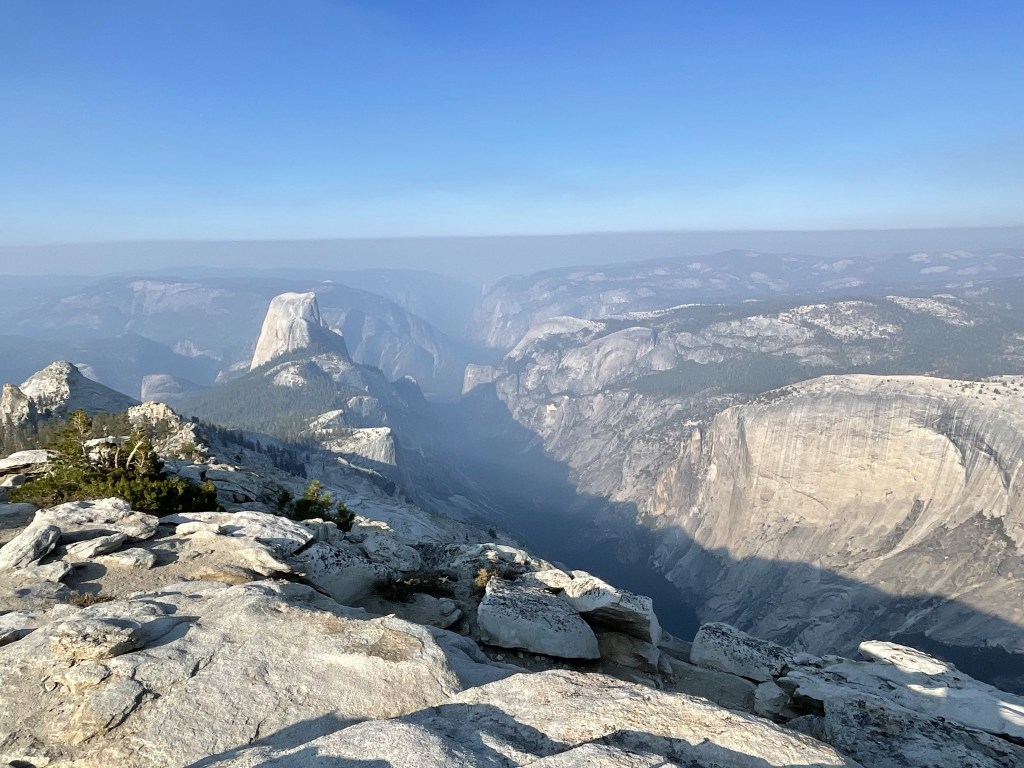 It was cold and windy on the summit, so I had to bundle up. I had the entire summit to myself which must be pretty rare for such a popular hike. The smoke was much better than the previous day but still impacted the views from the summit. The view of Yosemite Valley was stunning.