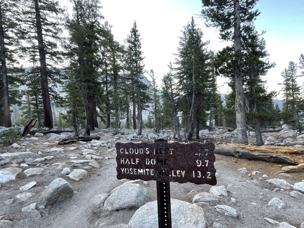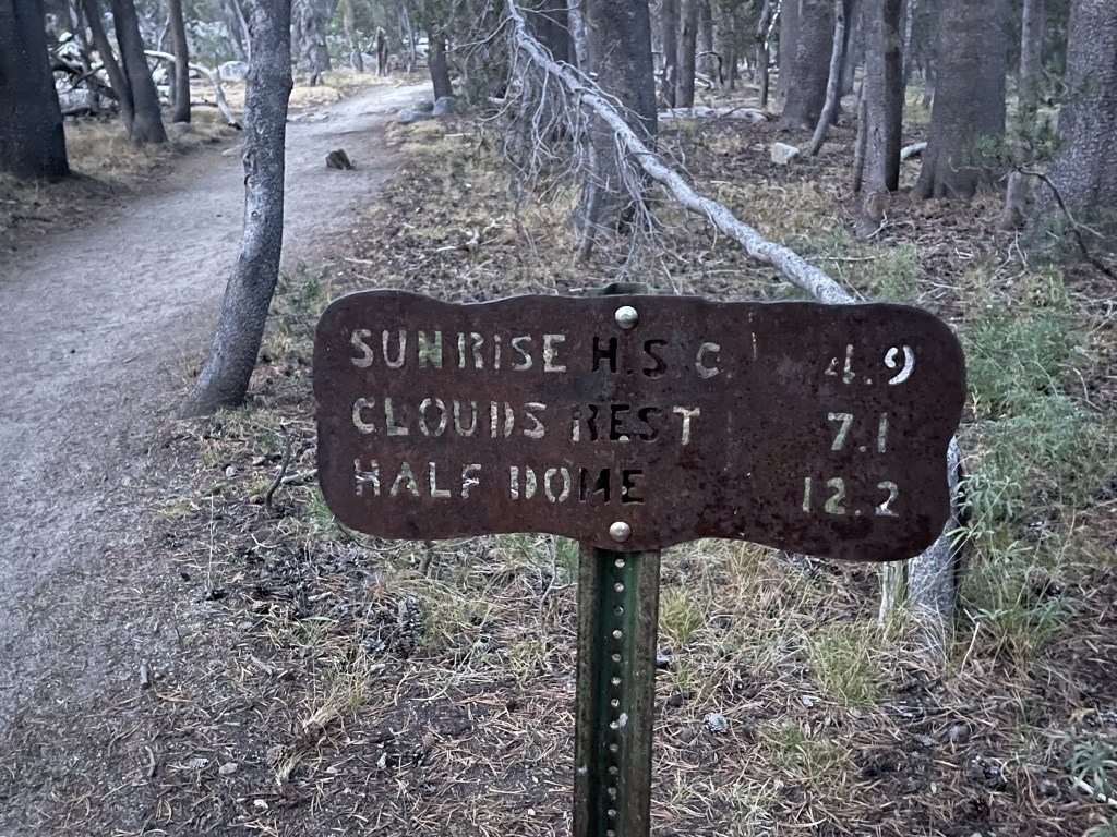 After the bridge I reached a T intersection. I turned right onto the Clouds Rest Trail.