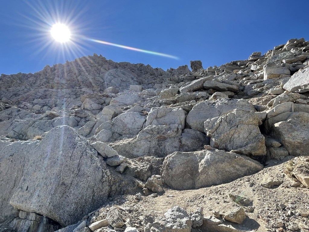 I packed up and made the long drive to the Red Lake Trailhead near Big Pine. I was planning to climb Split Mountain the next day, but unfortunately I did not make it to the summit. I turned around at 11600 feet due to time. I had only been hiking for about 4 hours but figured I had another 3 hours to the top. With the descent and the long drive home I figured I wouldn’t get home until after midnight. I was concerned about staying awake while driving and also didn’t want to feel awful at work the next day. One thing I will note is that the drive to the Red Lake Trailhead was a nightmare. I tried the Tinemaha Campground shortcut suggested on Summitpost but ran into a locked gate. I wasn’t 100% sure I was even on the correct road as it was difficult to navigate in the dark. I drove all the way back to Big Pine and took the long and arduous McMurray Meadows Road to the trailhead. This road starts out fine but the last 4 or so miles were very difficult in my Subaru. The road was rocky, narrow, and steep, but thankfully I made it there and back okay. The worst part about failing on Split Mountain is the thought of having to drive that road again in the future.
