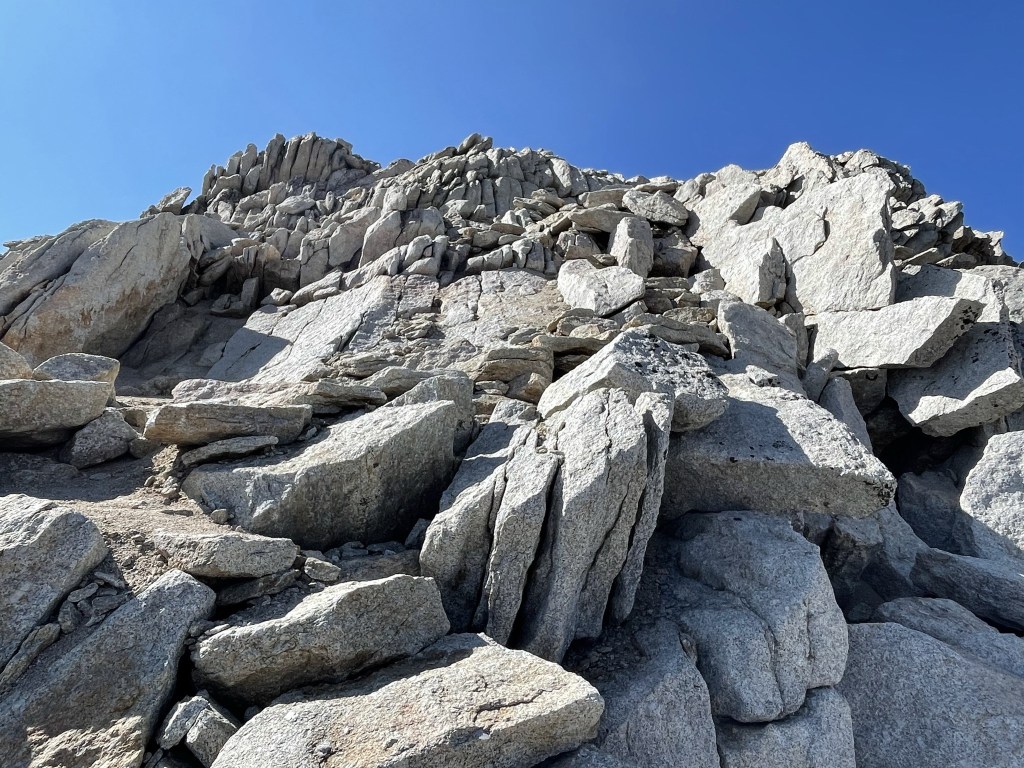 Oddly, I found a reference marker on one of the blocks. I don’t usually find them so far away from the summit.