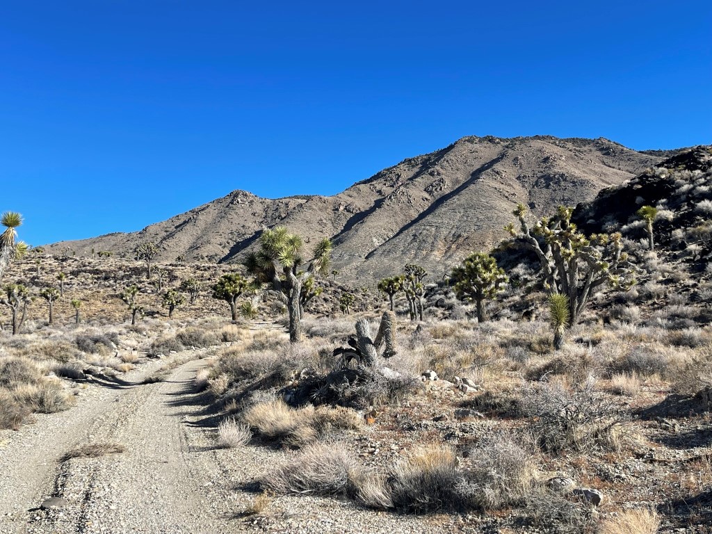 Next up was Nelson Range High Point (7696 feet). The Nelson Range is a tiny little mountain range separated from the Inyos by Lee Flat. Nelson is a DPS peak as well as a Zdon peak, so it was the primary goal for the day. I drove east on White Mountain Talc Road and then went north for a few miles on a dirt road heading for the mountain. Note that there are 2 separate dirt roads that go north from White Mountain Talc Road – I took the left (western) one. This road started off very good but got rougher as it went north. I started hiking at 9:39am from 5952 feet. It was now 39 degrees.
