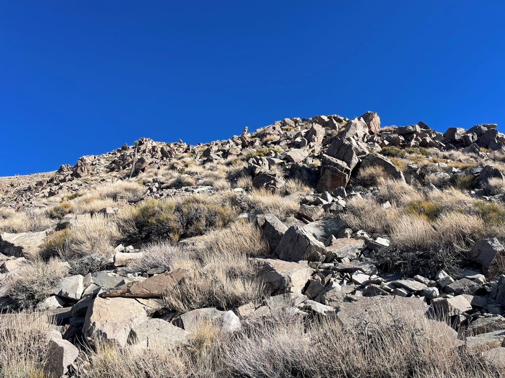 I reached the base of the mesa and climbed up the steep rocky slope.
