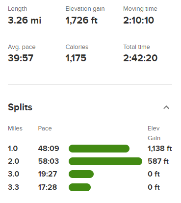 I reached the summit at 7:19am at 2.8 miles!