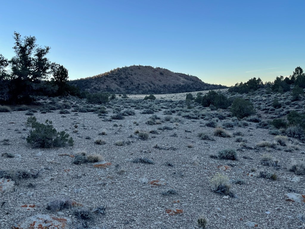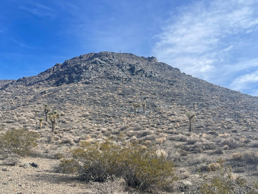 The final peak of the day was Jack Gunn Peak (5603 feet), a small hill a few miles south of the Nelson Range. I drove south on White Mountain Talc Road back to Saline Valley Road, then went east on a spur road for a short way and then parked. The spur road had a short downhill that you may need 4WD/AWD to get back up, but you could just start this hike from Saline Valley Road if needed. I started hiking at 1:16pm from 5173 feet above sea level.
