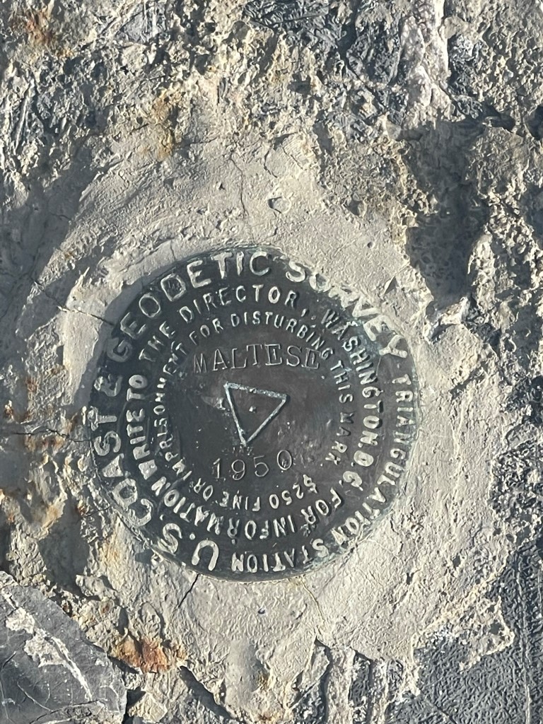 I reached the summit at 1:43pm at 0.9 mile! I signed the register which had been placed in 2007. The most recent entry was from May 6. I located the “Maltese” benchmark and 2 reference markers.
