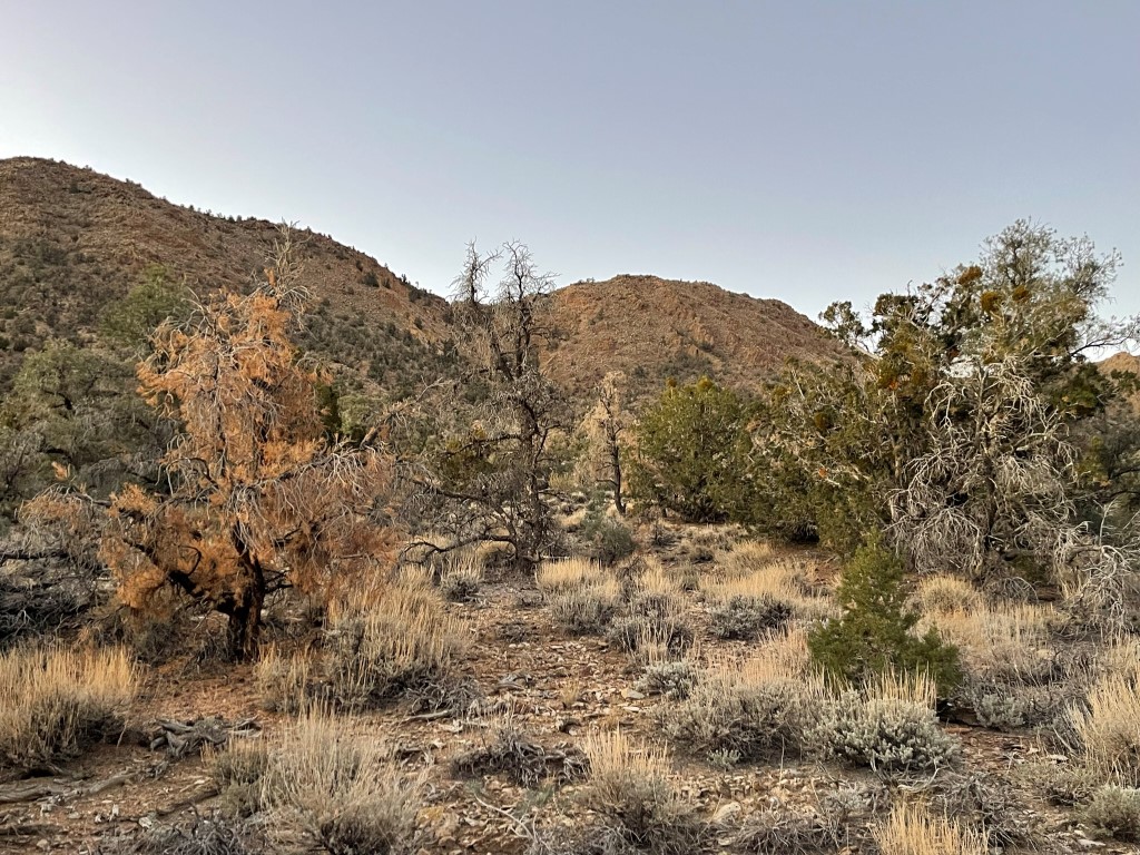 At 1.1 miles / 7465 feet I reached a small dip and found myself in a pinyon/juniper woodland.