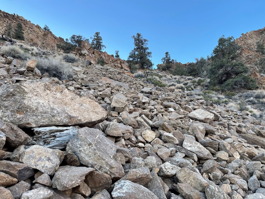 I descended once I was done enjoying the views. I chose a different ridge to descend, slightly north of my ascent route. Similar to the other ridge, this ridge also had a gendarme in which I climbed down some optional class 3. I reached an old cabin at the bottom.
