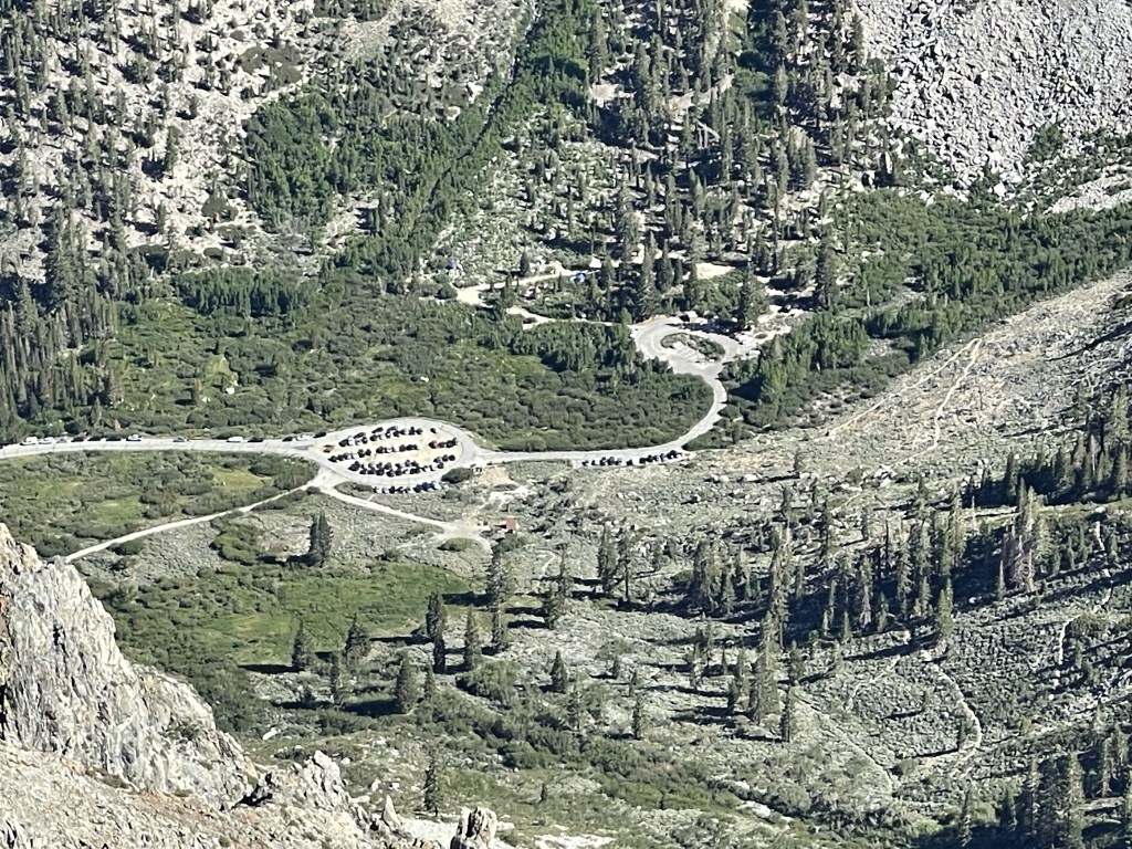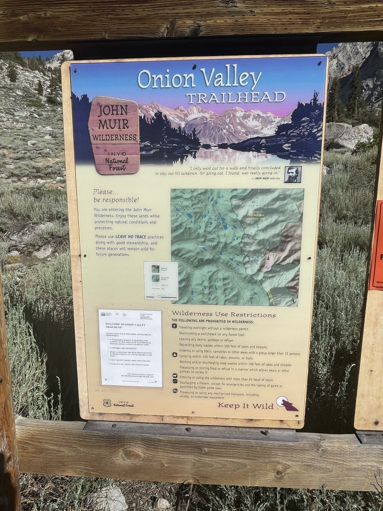 It was such a low snow year in California that much of the High Sierra was already snow free. This of course is very concerning from a wildfire perspective, especially after how bad they were the previous year. I decided to take advantage of the dry conditions and make a quick weekend trip to the Onion Valley area to climb a few more SPS peaks. I left San Diego at 3:30am and arrived at Onion Valley just after 8:30. Onion Valley, which sits at 9200 feet, is a popular trailhead in the Eastern Sierra 13 miles west of Independence. It contains a small campground, a large hiker parking lot, and an equestrian staging area. My plan for the day was to climb Dragon Peak (12927 feet) and Kearsarge Peak (12615 feet). Both peaks are located northwest of the trailhead and can each be done as a half day hike or combined into one long day. The parking lot was full when I arrived, so I had to park down the road a short way. I began hiking at 8:45am from 9070 feet.