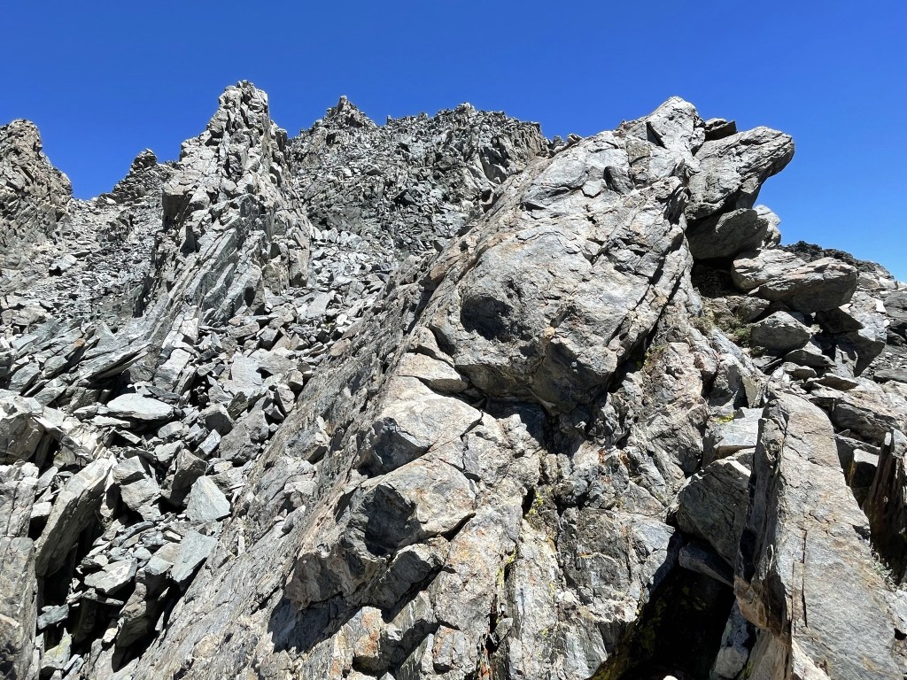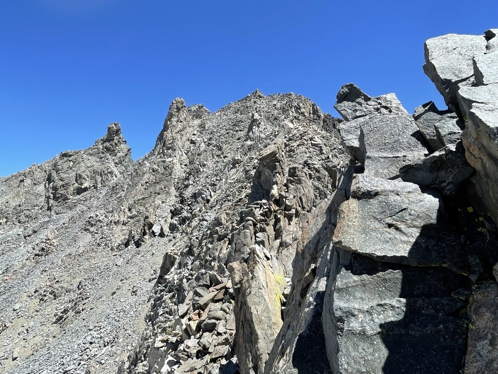 A few class 3 moves were required to proceed. I generally stayed just below the ridge on either the left or right side.